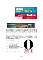 목차 Ⅰ.서론 1.축제소개 1) 대구국제뮤지컬페스티벌 2) 대국국제오페라페스티벌 Ⅱ.본론 1.문제점 2.개선방안-뮤직페스티벌 3.SWOT분석 Ⅲ.결론 1. 향후과제 Ⅳ.참고문헌 본문 Ⅱ. 본론 1) 대국국제오페라페스티벌과 대구국제뮤지컬의 문제점 ①불편한 대중교통과 비좁은 주차장. 대구오페라 하우스의 경우 그 주변이 동성로 시내와 매우 인접해 있으므로 예전부터 현재까지 대중교통이 매우 혼잡하다. 대중교통을 이용하지 않아도 주차할 곳을 찾지 못하여 주변을 겉돌고, 겉도는 중에도 심각한 교통체증에 시달린다. ②비싼입장료. 오페라의 경우 축제 입장료만 5만원이다. 오페라를 자주 이용하고 즐기는 사람이라면 그만의 가치로 부담되는 돈이 아니지만, 축제를 즐기러온 사람의 경우 부담되는 가격이다. ③시간적 여유부족. ④관객이 텅 빌 수밖에 없는 기획. 가장 큰 문제는 공연장에 사람이 많이 없다는 점이다. ⑤대부분의 축제가 관 주도의 형태를 벗어나지 못하고 있다는 점이다. 인위적으로 만들어진 행정적 진행은 결국 실적 중심의 행사로 전락하게 됨으로써 축제 내용의 흐름이 경직되고 다수 지역민들의 무관심 속에서 주최측만의 형식적인 잔치로 끝나게 된다. ⑥예산부족을 들 수 있다. 대체로 빈약한 재정상태로 진행되는 행사는 내용이 형식적으로 흐르는 경향이 두드러지며, 결국 매년 요식행위 처럼 반복되는 축제에 대해서 주민들은 식상함을 느끼게 된다. ⑦축제의 공간과 시간의 획일성이 지적된다. 물론 정부의 권장사항이라 하지만 대부분의 축제가 10월에 집중되어 있으며, 축제의 공간 역시 행정편의주의에 의해서 수시로 바뀜으로서 축제의 생존성을 잃어버리게 한다. ⑧국제행사라 부르기엔 부족한 해외 홍보. ⑨소수엘리트의 전유물이라는 선입견. 참고문헌 * 대구국제뮤지컬페스티벌 홈페이지 http://www.dimf.or.kr/ * 대구국제오페라페스티벌 홈페이지 http://www.diof.org/ 키워드 관광이벤트, 뮤직페스티벌, 이벤트, 페스티벌, 뮤직 |