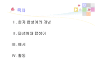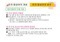 목차 Ⅰ. 한자 합성어의 개념 Ⅱ. 파생어와 합성어 Ⅲ. 예시 Ⅳ. 활동 본문 한자 합성어의 구성요소 어근, 어간, 어기 한자 합성어 : 직접 구성 성분이 모두 한자어 어기(어근, 단어)인 단어 ● 어근 : 고유어 굴절 접사와 직접 결합될 수 없는 의존 형식으로서 단어의 의미 중심부 ● 단어 : 고유어 굴절 접사와 직접 결합될 수 있는 자립 형식으로서 최소의 유의미적 단위 ● 합성어 : 직접 구성 성분이 모두 어기(어근, 단어)인 단어 한자 합성어의 구분 ● 완전 합성어 : 둘 이상의 자립 형식이 직접 구성 성분으로 결합되어 새로운 어휘소로 기능하는 구성체 ● 준 합성어 : 자립 형식과 의존 형식(어근), 또는 단어의 중심부로 기능하는 두 개의 의존 형식이 직접 구성 성분으로 결합하여 새로운 어휘소로 기능하는 구성체 ① 구성 성분의 자립성 ● 구성 성분 중 하나 이상이 자립 형식일 때 합성어로 판별하는 기준 ● 완전 합성어 : 구성 성분이 모두 자립 형식인 합성어 窓門(窓+文), 江山(江+山), 男女老少(男女+老少) 준 합성어 : 자립 형식과 의존 형식의 결합으로 이루어진 합성어 登山(登+山), 高等學校(高等+學校) ② 각 구성 요소의 의미 단위의 분리성 ● 합성어를 구성하는 각각의 요소가 원래의 개념은 유지한 채로 하나의 단어를 형성한 경우 ● 上下, 死活 : 선행 요소와 후행 요소 간의 관계가 대등한 경우 讀書, 日出 : 고유어 문장 속에서 각각의 구성 요소들이 문장의 주성분으로 인식되는 경우 키워드 합성어, 한자, 파생어 |