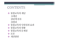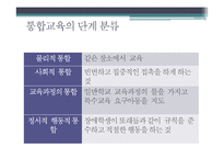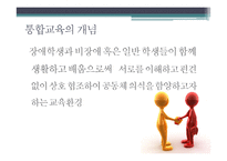 목차 통합교육의 개념 1)개념 2)단계 분류 3)원리 통합교육의 당위성과 효과 통합교육의 현황 통합교육의 문제점 토론 개선방안 본문 통합교육의 개념 장애학생과 비장애 혹은 일반 학생들이 함께 생활하고 배움으로써 서로를 이해하고 편견 없이 상호 협조하여 공동체 의식을 함양하고자 하는 교육환경 1. 정상화 모든 인간이 문화적으로 정상적인 수단을 사용해야 한다는 철학적 신념에 서 비롯되었다. 장애인도 정상적인 생활의 범위에 드는 모든 생활을 가능한 한 정상적인 방식으로 경험할 수 있도록 모든 기회를 제공하여야 한다는 규정 2. 최소제한환경 전 장애아동교육법에 명시된 법적 용어로 장애학생을 교육할 때 다양한 교 육서비스 전달체제를 마련해야 하며 장애학생들이 또래의 학생들과 최대한 상호작용할 수 있는 환경을 만들어 눠야 한다는 것이다. 3. 주류화 장애학생이 특수교육 환경에 속해 있지만 일반교육 환경에 주로 배치되어 교 육을 받게 하는 방식을 말한다. 키워드 통합교육, 장애아동, 장애, 아동, 통합, 통합교육의 현황, 통합교육의 문제점 |