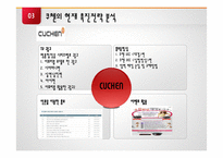 목차 1. 기본적인 현황조사 2. 현재 포지셔닝분석 및 촉진전략분석 3. 현재 포지셔닝과 촉진전략 문제점 4. 새로운 포지셔닝 5. MC 전략구축 및 기대효과 본문 현재 포지셔닝과 촉진전략의 문제점 광고 모델만을 부각 제품의 성능이나 기능홍보보단 광고 모델만을 부각시키기 위한 빠른 장면 전환 쿠첸송의 문제 현재 제품수명주기에서의 쿠첸송의 필요성 새로운 포지셔닝 제시 주부들을 붙잡을 수 있을 만한 적절한 가정적 모델을 선정 ↓ 쿠첸브랜드를 알리기 위한 주부들의 체험단을 모집 일단 브랜드인지도올리기 ↓ 기능부각과 재미있는 CF Life style 제시 웰빙에 대한 욕구 자극 명품철정 시스템 안에 네트워크 쿠킹(Network Cooking)을 활용 제품기능 알리기 성장기의 시장이므로 브랜드 회상을 높이기 위해 경쟁회사보다 광고 노출 빈도를 높이고 징글을 활용 소비자 관심유도 소비자들 중 주부 체험단을 만들어 밥솥을 사용하게 한 후 설문조사 및 사은품 UCC형식의 비교광고 밥이 아닌 다른 찜, 음식들을 만들어 소비자들에게 밥솥을 공개하지 않고 시식하게한 후 어떤 밥솥을 더 선호하는 지 알아보기 참고문헌 출처사이트 http://www.cuchen.com/ http://v.daum.net/link/10161515 http://www.cuckoo.co.kr/ http://news.naver.com/main/read.nhn? mode=LSD&mid=sec&sid1=101&oid= 018&aid=0002290351 출처서적 소비자는 무엇으로 사는가 : 니콜라 게겐 키워드 쿠첸 명품철정 IMC 전략, 쿠첸 촉진전략, MC 전략구축 및 기대효과 |