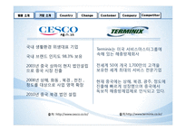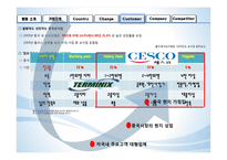 목차 1.기업 소개 2.Country 3.Change 4.Customer 5.Company 6.Competitor 본문 CESCO 국내 생활환경 위생대표 기업 국내 브랜드 인지도 98.3% 보유 2003년 중국 상하이 현지 법인설립으로 중국 시장 진출 2008년 상해, 화동 , 북경 , 천진 , 청도를 대상으로 사업 영역 확장 2010년 중국 북경 법인 설립 TERMINIX Terminix는 미국 서비스마스터그룹에 속해 있는 해충방제회사 전세계 50여 개국 1,700만의 고객을 보유한 세계 최대의 서비스 전문기업 현재 중국에는 상해, 북경, 광주, 정도에 진출해 빠르게 성장했으며 중국에서 독보적 해충방제업체로 인식되고 있다. 01 체면을 중시하는 중국 소비자 특성 02 해충번식, 피해에 유리한 조건 03 해충방제시장의 성장기 단계 04 서비스 시장 발전 부족한 중국에서 경쟁우위 확보 05 시장잠재력 - 고매력, 저경쟁 인구 - 13억 4324 만명 (2012.7월) 출처:CIA World Factbook GDP - 세계2위 / 6조 9884억원 (2011) 출처 : International Monetary Fund 중국 서비스 산업 시장 및 사회적 인식의 변화 중국정부는 12차 5개년 계획에서 소비중심의 내수확대 전략을 강조하고 있어 서비스 산업의 성장이 기대 중국은 서비스 산업 분야에서 외자기업과 중국기업간 합작투자를 유도하기 위해부분적인 규제완화를 지속 신종플루 등 각종 전염병의 증가 및 해충 피해에 의한 농림 피해뿐만 아니라 음식점 및 일반 가정에도 해충이 많이 발생 키워드 서비스경영, Terminix, 세스코, 세스코와 Terminix 서비스경영 |