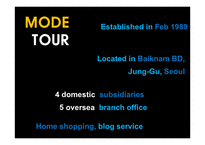 목차 1. Introduction 2. Financial analysis 3. Observation 4. Conclusion 본문 HANA TOUR Established in Nov1993 Located in Jogno-gu, Seoul 12 domestic subsidiaries 29 oversea branch office SNS Application MODE TOUR Established in Feb 1989 Located in Baiknam BD, Jung-Gu, Seoul 4 domestic subsidiaries 5 oversea branch office Home shopping, blog service 키워드 모두투어, 하나투어, 회계관리, 하나투어 모두투어 제무재표, 하나투어 vs 모두투어 제무재표 분석 |
