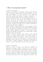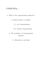 목차 1. What is the transportation industry?? 2. Representative examples 2-1. Air transportation 2-2. Marine transportation 3. The problems of transportation industry 4. Alternatives and plans 본문 1. What is the transportation industry?? 1. Concept of transportation Transport or transportation is the movement of people, animals and goods from one location to another. Modes of transport include air, rail, road, water, cable, pipeline, and space. The field can be divided into infrastructure, vehicles, and operations. Transport is important since it enables trade between peoples, which in turn establishes civilizations. Transport infrastructure consists of the fixed installations necessary for transport, and may be roads, railways, airways, waterways, canals and pipelines, and terminals such as airports, railway stations, bus stations, warehouses, trucking terminals, refueling depots (including fueling docks and fuel stations), and seaports. Terminals may be used both for interchange of passengers and cargo and for maintenance. Vehicles traveling on these networks may include automobiles, bicycles, buses, trains, trucks, people, helicopters, and aircraft. Operations deal with the way the vehicles are operated, and the procedures set for this purpose including financing, legalities and policies. In the transport industry, operations and ownership of infrastructure can be either public or private, depending on the country and mode. 참고문헌 - Ministry of Land, Transport and Marine Affair - http://www.mltm.go.kr/ - Koroad - http://www.koroad.or.kr/ - SERI(Samsung Economics Research Institute) - http://www.seri.org/ - Wekipedia - www.wekipedia.org - Gimje City Hall - http://www.gimje.go.kr/ 키워드 개선방안, 교통산업, 서비서, 산업, 방안 |