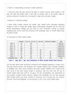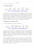 목차 Introduction - 1) The outline of noodle market 2) Existing white noodle brand - Sarigomtang-men 3) The growth of white noodle market Main subject - The marketing strategy depending on the manufacturers 1) Paldo - Kokomen 2) Samyang - Nagasaki jjamppong 3) Ottogi - Gisu-men 4) Nongshim - Hooroorook Kalguksu Conclusion - Summary and suggestion 본문 = In 2011, the Korean noodle market size was approximately 2 trillion won that one person consumes about 84 noodles. As the popular tradition that noodle market grows when the economy is in a bad circumstance, the size of noodle market grew during 2008 through 2009. After some stagnation in 2010, the new demand is created by the advent of white noodle market in the latter half of the year 2011. Even though there was not much difference of quantity from 2007 to 2011, it is expected that the noodle market has potentiality of growth considering the inflation rate of increase in unit noodle cost. The noodle market as an oli-gopolistic market ○ Small scale companies has the majority of market share Nongshim Samyang Ottogi Paldo Total Market share 63% 15.6% 10.9% 10.5% 100% Table 2 - Noodle Market Share by Companies (April, 2012) = As shown in the chart above, four companies have the entire noodle market share. Especially, Nongshim has 63% of the total noodle market share. This emphasizes that Nongshim has the most considerable influence among the suppliers in the noodle market. Other three companies in low ranking get influenced by the strategies of Nongshim. Therefore, the market follows Stackelberg Model that the leading company s strategies affect the following companies. 참고문헌 라면시장 : 하얀 국물의 역습 The web page of Nongshim, Sam-yang, Ottogi and Paldo. AC Nilson - the marketing research company The globalization Strategy of Nongshim(2011) - Dong Kee Rhee 키워드 마케팅, 농심, 전략, 사례, 삼양, 팔도, 오뚜기, 농심, 라면시장 |