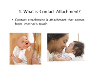 목차 What is contact attachment? Misunderstanding of Touching attachment Experiment about contact attachment Real cases of contact attachment 본문 2. Misunderstanding about contact attachmentWhat makes Independent? Misunderstanding no.1 :Many Korean and American mothers stick to make their baby dependently but independently. For example 1.Separated from parents when infants sleeping 2.Don't soothe crying baby But Is this true?? 2. Misunderstanding about contact attachmentInfants need a lots of touching! 1.Sleeping together makes baby comfortable! 2.Baby needs soothe when they're crying Because They're too week from stress for 5years >Touching is the key to makes your baby independent. I need your touch! 키워드 애착, 접촉, 영문, 애착 형성 |