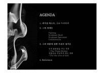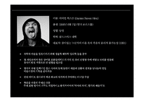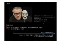 목차 1. 데미안 허스트, 그는 누구인가 2. 그의 세계는 Painting Sculpture Skull Sculpture Specimen Collaboration 3. 그의 작품에 대한 우리의 생각은 심적 불편함을 주는 작품 - The Virgin Mother 상업성을 의심하게 하는 작품 - For the love of God 4. Reference 본문 이름: 데미언 허스트 (Damien Steven Hirst) 출생: 1956년 6월 7일 (영국 브리스톨) 성별: 남성 학력: 골드스미스 대학 대표작: 살아있는 누군가의 마음 속의 죽음의 물리적 불가능성 (1991) 과학과 미술을 접목시키기 위해 생물학 해부학 병리학 등을 공부 첫 개인전에서 죽은 상어를 포름알데히드가 가득 찬 유리 진열장 속에 매달고 모터를 연결해 움직이게 한 작품으로 큰 반향을 일으킴 영국의 유명 컬렉터인 찰스 사치의 눈에 들면서 예술과 상품의 경계를 넘나들며 연일 미술시장의 기록을 갈아치움 런던 테이트 갤러리가 매년 최고의 작가에게 수여하는 터너상 수상 죽음을 작품의 주제로 다룸 주제 표현 방식이 너무도 직접적이고 충격적이어서 '악마의 자식', 엽기의 예술가'로 참고문헌 메튜 키이란,『예술과 그 가치』, 이해완 옮김, 북코리아, 2010 김명옥,「죽음이 브랜드가 된 데미안 허스트」,『미술과 담론』,2007 정헌이, 죽음의 미학, 한성대학교, 2010 김민정 외, 트레이딩 업으로서 디자이너와 브랜드의 콜라보레이션 사례 연구, 한국디자인학회지, 2008 Wikipedia - Damien Hirst (http://en.wikipedia.org/wiki/Damien_hirst. 2010.4.2) 키워드 데미안허스트, 예체능, 작품, 연구 |