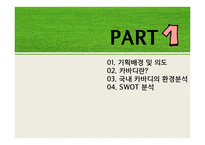 목차 PART 1. 01. 기획배경 및 의도 02. 카바디란? 03. 국내 카바디의 환경분석 04. SWOT 분석 PART 2. 01. 굿바디 카바디의 개요 02. 프로그램 일정 03. 프로그램 세부사항 PART 3. 01. 홍보전략 02. 스폰서쉽 03. 사후관리 & 위기관리 PART 4. 01. 예산계획 02. 기대효과 본문 청소년을 위한 축제 기획 카바디 선정 동기 특별한 장비나 장소가 필요 없음 술래잡기+피구+격투기 쉽게 익힐 수 있음인천아시안게임 비인기종목 관심 제고 소개 고대 인도의 병법에 기원을 두고있음 격투기와 술래잡기를 결합한 듯한 경기 1990년 제11회 북경아시아경기대회 처음으로 남자부만 정식종목 채택 2010년 제16회 광저우아시아경기대회 여자부 정식종목으로 채택 구성 경기는 각 7명으로 실시하고, 한 팀의 선수는 최대 12명까지 구성 레이드(Raider)- 상대코드로 넘어가 칸트상태에서 공격을 계속하는 선수 안티(Anti)- 레이더가 있는 코트의 모든 선수 키워드 마케팅, 스포츠, 카바디, 기획, kabaddi |