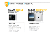 목차 SMart phone, Tablet Pc에 대해 UX, UI, PUI, GUI 란? 기종에 따른 사용자들의 평가 특별한 장면을 가진 컨셉 본문 SMART PHONE 휴대폰의 기능으로서 사용함과 동시에, 컴퓨터의 역할을 하는 휴대기기 둘의 공통점 일반pc를 기반으로 개발됨 모바일 운영체제 사용 터치스크린 (가상키보드,입력펜) 무선인터넷 일반pc를 기반으로 개발됨 콘텐츠의 '소비'에 특화 TABLET COMPUTER 터치 스크린을 주 입력 장치로 장착한 휴대용 PC이며 개인이 직접 갖고 다니며 조작할 수 있는 휴대기기 스마트폰과의 차이점 일반pc의 운영체제 사용가능 꽂아 쓸 수 있는 키보드 모든 면에서 증가된 스펙 (사이즈,배터리,용량) 키워드 테블릿PC, UI, 테블릿, 스마트폰, 조사 |