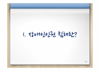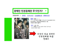 목차 1. 장애인 인권침해 장애인인권 침해란? 현황 2.장애인 인권침해 사례 3. 장애인 인권 침해의 원인 4. 사회정책 및 프로그램 5.해결방안 본문 1. 장애인인권 침해란? 장애인 인권은 장애인이 일반인과 동등한 대우를 받기 위한, 인권의 확장된 개념이다. 장애인도 인간의 존엄성을 지니고 있으므로 기본적인 권리를 주장하고 대우 받을 수 있어야 한다. 하지만 건강권, 거주이주권, 접근권, 및 생활권, 노동권, 교육권, 이동권 및 보행권, 보육권, 문화향유권, 선거권 등 기본적인 권리들이 제대로 대우 받지 못하고 있는데 이를 장애인 인권 침해라 한다. 키워드 장애인, 인권, 장애, 인권침해, 장애인인권 |