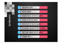 목차 1.게임이론의 정의 2.죄수의 딜레마 3.뷰티플 마인드 속 죄수의 딜레마 4.고지전 속 죄수의 딜레마 5.다크나이트 속 죄수의 딜레마 6.In a better would 속 죄수의 딜레마 7.다른 곳에 사용된 죄수의 딜레마 8.우리들의 생각 본문 Zero-sum game 본질은 게임 참가자가 서로 경쟁하고 그 결과 한 사람의 이득이 다른 사람의 손실로 귀착되는 현상이므로 적대적 게임 "아담 스미스는 틀렸어. 너희가 저 금발의 여자에게 모두 다가가면 너희 중 아무도 그녀를 얻지 못해. 반대로 그녀 친구들에게 다가간다면 그녀들 역시 거절하겠지. 자신들이 대타라는 것을 알면 기분나쁠테니까." "만약 우리들 중 아무도 금발의 여자에게 다가가지 않는다면 그녀의 친구들과 너희들 모두 원하는 결과를 얻을 수 있어. 우리가 모두 이기는 유일한 길이지." 키워드 게임이론, 영화속, 사례, 게임, 이론, 죄수의 딜레마 |