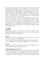 목차 목차 Ⅰ. 서론 Ⅱ. 이론의 배경 1. 이론가의 배경 2. 철학적 배경 (1) 이론적 배경 (2) 개념틀 Ⅲ. 목적달성 이론 1. 가정 2. 개념 3. 명제 4. 메타파라다임 Ⅳ. 이론의 적용 1. 간호실무 2. 간호연구 3. 간호교육 4. 간호행정 Ⅴ. 이론이 간호에 주는 의미 1. 평가 2. 이론의 장 단점 3. 이론이 간호학에 주는 의미 Ⅵ. King의 목표달성 이론을 적용한 논문 본문 Ⅵ. King의 목표달성이론을 적용한 논문 흡연 대학생의 목표달성방법 합의가 금연목표달성에 미치는 효과, 최인희(2005). 대한간호학회지. 35(7). 1362-1370. 흡연은 현대인의 질병이나 사망원인중 단일 원인으로서 가장 큰 영향력을 미치는 요인이다. 만성 호흡기 질환이나 관상동맥질환, 뇌졸중을 유발할 가능성이 높으며, 폐암은 물론 식도암, 위암, 설암 등 각종 암의 원인이 되는 것으로 알려져 있다. 최근 우리나라 사망원인 1위가 암이며 흡연이 주요원인인 폐암사망률이 가장 높다는 통계청의 보고가 있었다. 20대 초반의 흡연율이 45.6%로 가장 높아 젊은 연령층의 흡연율이 문제시 되고 있다. 따라서 본 연구는 간호사와 대상자간 상호작용 중 금연목표달성 합의가 금연목표를 달성하는데 영향을 미치는지 연구함으로써 목표달성이론의 유용성을 검증하고 검증된 효과를 통해 금연중재 방안을 제안하고자 하는 연구이다. 참고문헌 <참고문헌> 간호학탐구 (2006). 간호이론과 실무의 적용, 현문사 김수지 (1985). 간호이론, 수문사 이소우외 4인 (2000) 간호이론의 이해, 수문사 이원희 (1990). Imogene M.King의 이론. 간호학논집.p101-106 장은희, 박현숙(1996). King의 목표성취 이론의 분석 및 평가, 영남대학 논문집. p153-168. 최영희(1990). 간호이론. 서울 : 수문사 최인희(2005). 흡연 대학생의 목표달성방법 합의가 금연목표달성에 미치는 효과. 대한간호학회지, 35(7). 1362-1370. 하고 싶은 말 킹 이론에 관하여 조사 했습니다. 목차 및 미리보기 참조 해주세요.^^ 키워드 킹이론, 킹이론철학적배경, 킹목적달성이론, 킹이론개념, 킹이론명제, 킹이론메라파라다임, 킹이론적용, 킹이론간호실무, 킹이론간호연구, 킹이론간호교육, 킹이론간호의미 |