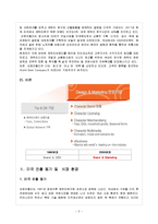 목차 Ⅰ. 서론 1. 기업소개 2. 진출동기 Ⅱ. 시장분석 1. 미국 진출동기 2. 미국 시장환경 Ⅲ. STP 및 SWOT 분석 1. SWOT 분석 2. STP 분석 Ⅳ. 4P전략 Ⅴ. 문제점 및 해결방안 참고문헌 본문 Ⅰ. 서론 선정이유 오로라월드는 1981년 오로라월드(주) 으로 시작하였고, 1990년 초에는 국내인건비 상승 및 후발개도국의 추격으로 OEM방식의 경쟁력이 약화됨에 따라 인도네시아와 중국에 생산기지를 설립하게 된다. 그리고 이 때 사양산업으로 치부되던 봉제완구 업계에서 OEM방식의 한계를 느끼고 자체브랜드로써 해외시장의 공략을 위해 미국, 홍콩에 판매법인을 세우는 등 자체브랜드 기반을 조성하게 된다. 그 후 꾸준한 품질관리와 차별화된 디자인 전략으로 봉제완구 시장에 뛰어 든 결과, 오로라월드는 미국 캐릭터 완구 시장에서 브랜드 인지도 2위를 기록하는 한편, 2011년 한해 매출 938억, 영업이익 70억을 달성하였다. 국내대기업들과는 달리 제품 중심으로 해외마케팅 시장을 공략함으로써 회사의 초창기부터 성장기, 성숙기에 이르는 단계별 마케팅 믹스에 대해서 알 수 있을 것이며 봉제완구제조라는 마케팅의 역할이 큰 제품으로 기본적인 마케팅 지식을 확인하는데 좋은 사례가 될 것으로 기대된다. 한국에서는 많이 알려지지 않은 기업이지만 미국에서 강력한 브랜드 파워를 행사하고 있는 오로라월드는 성공적인 국제마케팅 사례로 적합하다고 판단하여 마케팅 전략을 상세히 알아보고자 한다. 참고문헌 -삼성경제연구소 www.seri.org -LG 경제연구소 www.lgeri.com -전국경제인연합회 www.fki.or.kr -우리투자증권 www.wooriwm.com -오로라월드 홈페이지 www.auroraworld.com -머니 투데이 www.mt.co.kr -파이낸셜 뉴스 www.fnnews.com -e투데이 www.etoday.co.kr -기프트 비트 www.giftbeat.com -각종 포털 사이트 naver, google, daum 키워드 국제경영, SWOT, 오로라월드, STP, 경영 |
